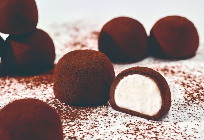 ทรัฟเฟิลช็อกโกแลตที่สอดไส้ครีมสดจากฮอกไกโดภายใน รสเข้มข้นแต่ละมุนด้วยสมดุลระหว่างครีม เบาเนียนกับช็อกโกแลตหอมละมุนอย่างลงตัว