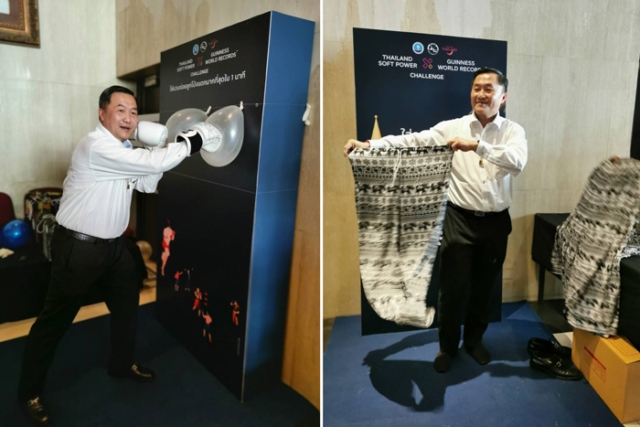 นายนิธี สีแพร รองผู้ว่าการด้านสื่อสารการตลาด ททท. กล่าวว่า สำหรับการจัดกิจกรรม “THAILAND SOFT POWER X GUINNESS WORLD RECORDS™ CHALLENGE” ครั้งนี้ ททท. ได้ร่วมกับ GUINNESS WORLD RECORDS™ จัดการแข่งขันใน 5 หัวข้อที่สุดของโลก ได้แก่ 1) ใส่นวมต่อยลูกโป่งแตกมากที่สุดใน 1 นาที 2) ใส่กางเกงช้างเยอะที่สุดใน 1 นาที 3) กินสตรีทฟู้ด (ปาท่องโก๋) มากที่สุดใน 1 นาที 4) ใส่หน้ากาก (หน้ากากผีตาโขน) ได้มากที่สุดใน 1 นาที 5) กินป๊อบคอร์นได้เยอะที่สุดใน 1 นาที โดยการแข่งขันแต่ละรายการได้เลือกเอาสินค้าท่องเที่ยวและ Soft Power ซึ่งเป็นที่รู้จักของนักท่องเที่ยวต่างชาติมานำเสนอ อาทิ ปาท่องโก๋ ได้ติดอันดับ 1 ใน 5 ขนมสตรีทฟู้ดที่ได้รับความนิยมมากที่สุดในโลกจาก TasteAtlas กางเกงช้างเป็นที่รู้จักและเป็นของฝากยอดนิยมในกลุ่มนักท่องเที่ยวต่างชาติ มวยไทยเป็นกีฬาซึ่งมีชื่อเสียงในระดับโลก และเทศกาลผีตาโขนซึ่งเป็นศิลปวัฒนธรรมเฉพาะถิ่นที่ได้รับความสนใจอย่างมากจากนักท่องเที่ยวชาวต่างชาติ