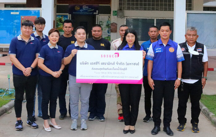 บริษัท เอสซีจี เซรามิกส์ จำกัด (มหาชน) ผู้ผลิตและจัดจำหน่ายกระเบื้อง สุขภัณฑ์และก๊อกน้ำภายใต้แบรนด์โสสุโก้ โดยนางสาวลลิดา เปลี่ยนดี Brand & Communication Strategy Manager บริษัทเอสซีจี เซรามิกส์ จำกัด (มหาชน) (แถวหน้า ที่ 2 จากซ้าย) และนายชิตวร วิเชียรพันธ์ SOSUCO Ware and Fittings Business Manager บริษัทเอสซีจี เซรามิกส์ จำกัด (มหาชน) (แถวหน้า ที่ 3 จากซ้าย) เป็นผู้แทนร่วมส่งมอบสุขภัณฑ์และก๊อกน้ำโสสุโก้ เพื่อสุขอนามัย และคุณภาพชีวิตที่ดีของชาวหนองหญ้าไซ จังหวัดสุพรรณบุรี ตาม “โครงการสิงห์ดำปันสุข นั่งสนุก ลุกสบาย” เพื่อพัฒนาคุณภาพชีวิตผู้ยากไร้ ผู้พิการ และผู้สูงอายุ