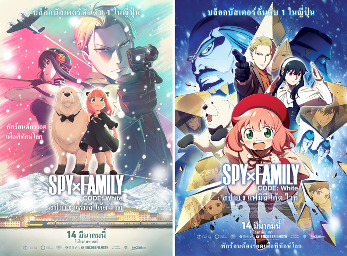 “Spy x Family Code: White” ภาพยนตร์ฟอร์มยักษ์อันดับ 1 ในประเทศญี่ปุ่น เล่าถึงครอบครัวปลอมๆ…เขา (ลอยด์) เป็นสายลับ ส่วนเธอ (ยอร์) คือมือสังหาร ทั้งลอยด์และยอร์ต่างรักษาชีวิตคู่ขนานของตัวเองไว้ระหว่างที่ต้องทำเหมือนมีครอบครัวที่เพอร์เฟ็กต์ แต่ลูกสาวบุญธรรมของพวกเขา อาเนีย สามารถอ่านจิตได้และรู้ความลับอันน่าตื่นเต้นของทั้งคู่โดยที่พวกเขาต่างไม่รู้ตัว