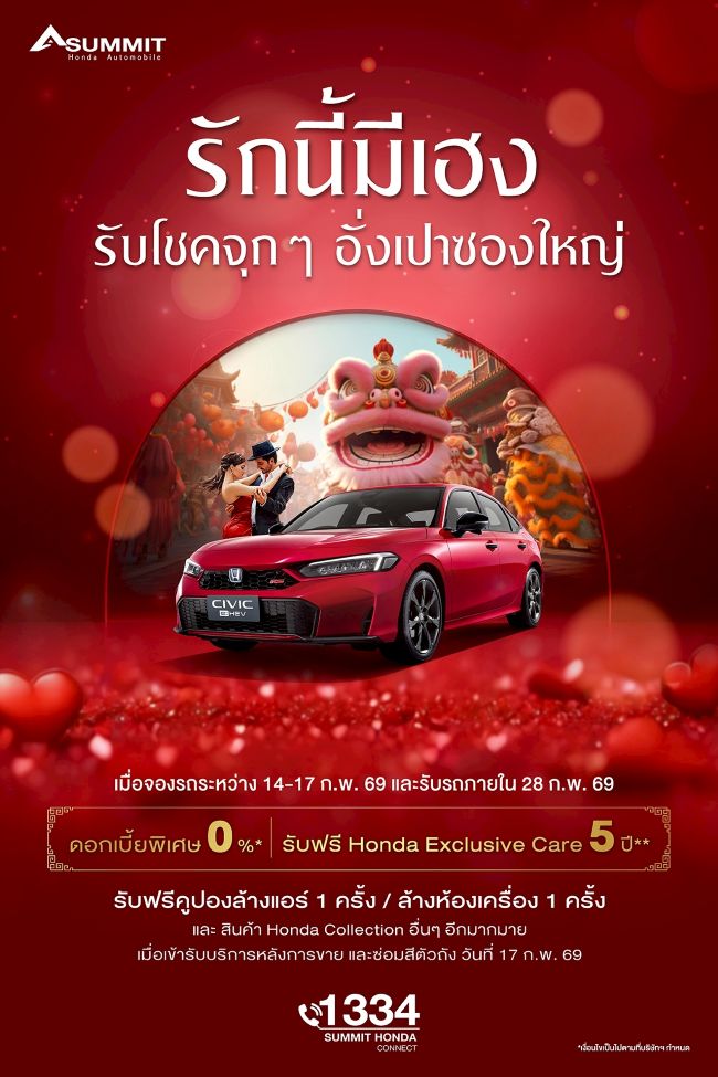 วาเลนไทน์และตรุษจีนปีนี้ ต้องบอกว่า ‘รักนี้มีเฮง’ ที่โชว์รูม ซัมมิท ฮอนด้า ออโตโมบิล ทุกสาขา14-17 กุมภาพันธ์ 2569