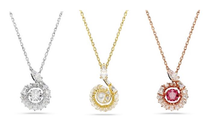 การใช้วัสดุที่หลากหลาย และสีที่ตัดกันสร้างความสดใหม่ให้กับสัญลักษณ์อันแสนคลาสสิกที่เป็นไฮไลท์ของคอลเลกชันนี้ โดยหงส์ตัวหนึ่งเคลือบทอง และอีกตัวเคลือบโรเดียม โดยหงส์ทั้งสองตัวประดับด้วยอัญมณี Swarovski Zirconia pavé ที่เปล่งประกายแวววาว แขวนอยู่บนสายโซ่ทองคำโทนอุ่น