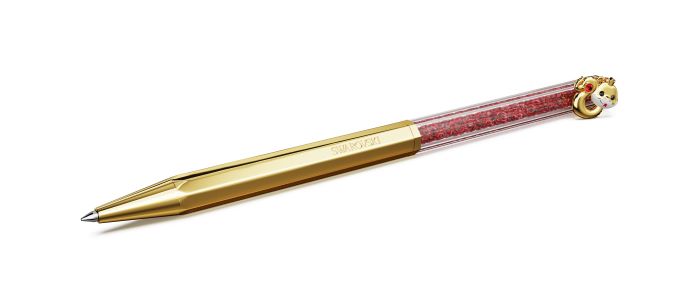 ปากกาลูกลื่นคริสตัล ออกแบบมาเพื่อเป็นแรงบันดาลใจให้เกิดความคิดสร้างสรรค์ และเฉลิมฉลองให้กับปีแห่งงู ประดับด้วยคริสตัลสีแดงราว 430 เม็ด ตัวปากกามีดีไซน์เคลือบทองในรูปทรงแปดเหลี่ยมอันเป็นเอกลักษณ์ของสวารอฟสกี้ เพื่อการใช้งานที่มั่นคง และสะดวกสบาย อีกหนึ่งความพิเศษคือการเพิ่มความรู้สึกสนุกสนานเข้าไปด้วยจี้รูปงูสุดน่ารักที่ประดับด้วยคริสตัลหลากสี