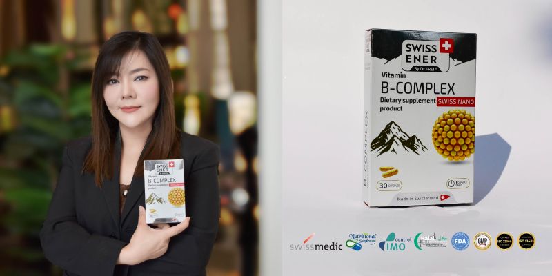 • Vitamin B-Complex Dietary supplement product (Swiss Ener by Dr. Frei Brand) : วิตามินบีรวม 8 ชนิด บำรุงสมองและระบบประสาท