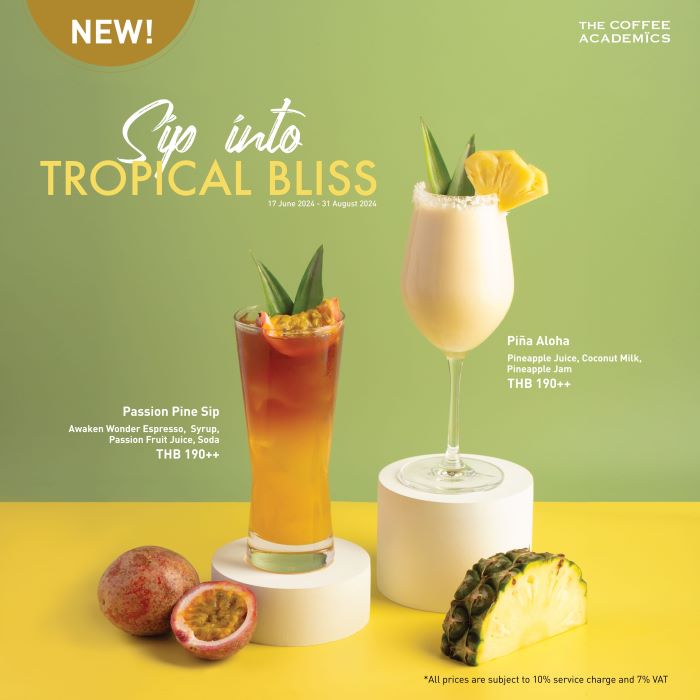“เดอะ คอฟฟี่ อะคาเดมิคส์” ชวนคลายร้อนด้วยความสดชื่นสไตล์ทรอปิคอล กับ 2 เมนูเครื่องดื่ม และ 2 เมนูเบเกอรี่ใหม่