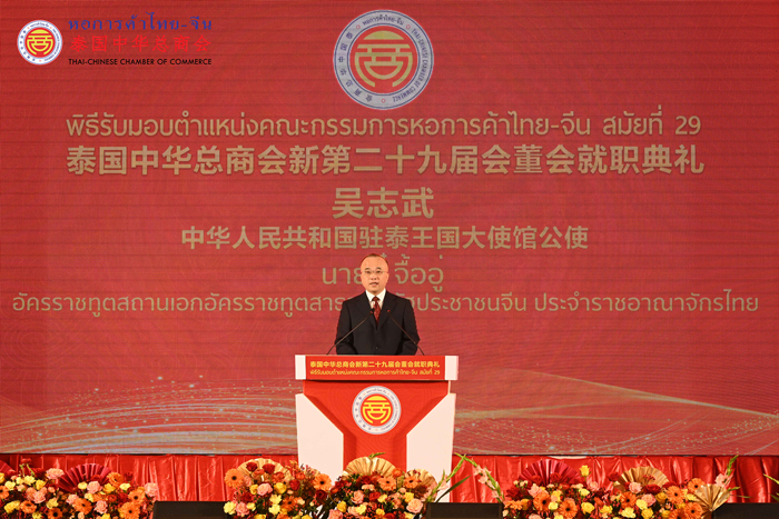 ท่านอู๋ จื้ออู่ อัครราชทูตสาธารณรัฐประชาชนจีน ประจำประเทศไทย แสดงความยินดีและชื่นชมบทบาทหอการค้าไทย-จีน ซึ่งเป็นองค์กรชาวไทยเชื้อสายจีนที่ใหญ่ที่สุดสั่งสมชื่อเสียงมายาวนานเป็นที่ยอมรับในสังคมวงกว้าง และยังเป็นศูนย์รวมนักธุรกิจชาวจีนโพ้นทะเลชั้นนำในประเทศไทยมาโดยตลอด พร้อมกันนี้ ท่านอู๋ จื้ออู่ แสดงความเชื่อมั่นว่า ประธานณรงค์ศักดิ์ จะนำคณะกรรมการหอการค้าไทย-จีน แสดงบทบาทผู้นำชาวจีนโพ้นทะเลในประเทศไทย สร้างความสามัคคี พร้อมอำนวยความสะดวกทางการค้าให้กับนักธุรกิจชาวจีนโพ้นทะเล มุ่งพัฒนาเศรษฐกิจและสังคมระหว่างประเทศไทยและจีน เพื่อสร้างความก้าวหน้าและความสามัคคีของชาวจีนโพ้นทะเล และส่งเสริมความร่วมมือในการแลกเปลี่ยนความสัมพันธ์อันดีระหว่างไทย-จีน