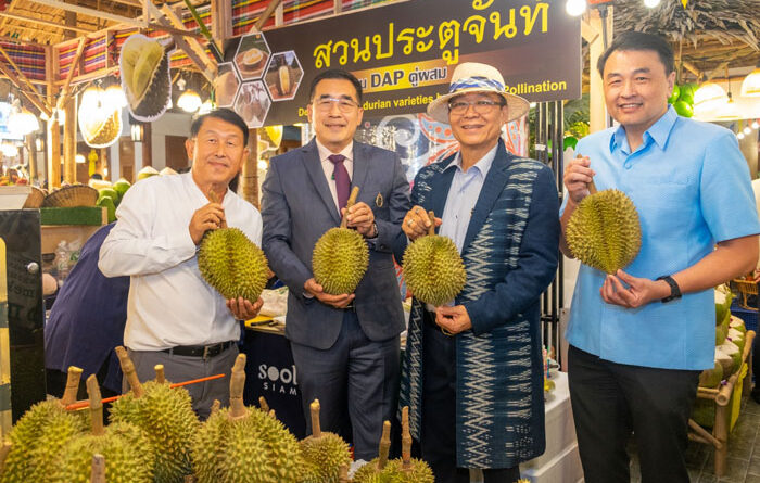 ภายในงานชูนวัตกรรมการเกษตรทุเรียนไทย นำทุเรียน “DAP” จากสวนทุเรียนประตูจันท์ จังหวัดจันทบุรี (D มาจากคำว่า ‘Development’ เป็นการพัฒนาทุเรียน A ‘Assisted’ หรือ ‘Assisting’ คือการช่วยทุเรียน และ P ‘Pollination’ การช่วยผสมเกสร ไม่ได้ปล่อยให้ผสมเองโดยธรรมชาติ) ได้แก่ ทุเรียน DAP 5Vsin1 ทุเรียน คู่ผสมจากต้นแม่หมอนทอง 1 แม่ ผสมด้วยเกสรจาก 5 พ่อ (1 พู 1 พ่อ) คือ มูซานคิง พวงมณี / เหลืองวินัย / จันทบุรี 2 / จันทบุรี 3 ผลที่ได้จากการผสมคือรสชาติตามสายพันธุ์แม่ประมาณ 70% และ จากพันธุ์พ่อ 30% โดยในแต่ละพูจะมีรสชาติและเนื้อสัมผัสที่แตกต่างกัน