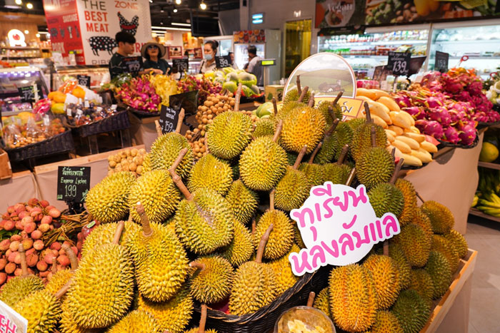 เดียร์ทัมมี่ ไลฟ์สไตล์ซูเปอร์มาเก็ต จัดแคมเปญ “Fruitful Fest 2024” จัดขึ้นตั้งแต่วันที่ 17 – 31 พฤษภาคม 2567 ภายในงานได้รวบรวมทุเรียน 12 สายพันธุ์ ไม่ว่าจะเป็นสายพันธุ์พิเศษหารับประทานยากและสายพันธุ์ยอดฮิตจากสวนชื่อดังทั่วประเทศ โดยจะหมุนเวียนให้ทุกคนได้ทานกันตลอดแคมเปญนี้ ไม่ว่าจะเป็น ทุเรียนมูซานคิง จังหวัดจันทบุรี ได้รับการขนานนามว่าเป็น ‘ราชาแห่งทุเรียนมาเลย์’ มีเนื้อเยอะ เมล็ดเล็กลีบบาง สีเหลืองสวยน่ารับประทาน ราคาจะสูง รสชาติจะมีเอกลักษณ์เฉพาะตัว หวานหอมอร่อยและตัดเลี่ยนด้วยรสขมนิด ๆ