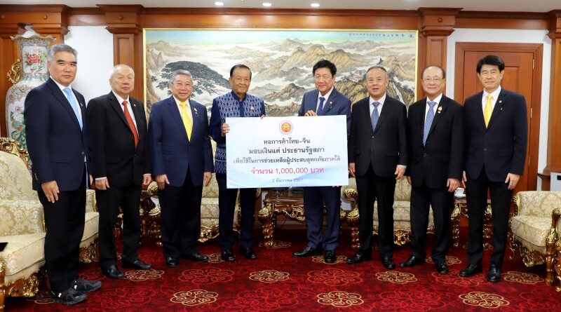 หอการค้าไทย-จีน มอบเงินบริจาคผ่านประธานรัฐสภา เพื่อช่วยเหลือผู้ประสบภัยน้ำท่วมในภาคใต้
