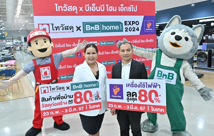 เตรียมตัวให้พร้อมแล้วมาช้อปกันที่งาน ‘ไทวัสดุ x บีเอ็นบี โฮม เอ็กซ์โป 2024’ ได้ตั้งแต่วันที่ 23 กุมภาพันธ์ – 3 มีนาคม 2567 เวลา 10.00 – 22.00 น. ณ ไบเทค บางนา ฮอลล์ 101 – 104 สามารถติดตามข้อมูลข่าวสารและโปรโมชันเพิ่มเติมได้ที่ www.thaiwatsadu.com, Line : @Thaiwatsadu, Facebook: Thai Watsadu และ BnB home: www.bnbhome.com , Line : @bnbhometh, Facebook: BnB home