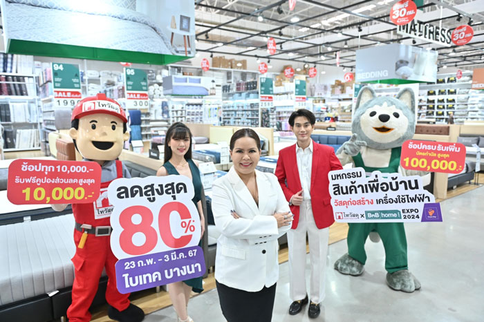นางสาวชุติพร คงเจริญสุข ผู้ช่วยกรรมการผู้จัดการใหญ่ ฝ่ายการตลาด บริษัท ซีอาร์ซี ไทวัสดุ จำกัด กล่าวว่า ‘ไทวัสดุ x บีเอ็นบี โฮม เอ็กซ์โป 2024’ คือ ครั้งแรกในการต่อยอดความสำเร็จของร้านไทวัสดุโมเดล White Format (รูปแบบไฮบริด) ที่ได้รับการตอบรับเป็นอย่างดีจากลูกค้าทุกกลุ่ม ในงานครั้งนี้จึงถือเป็นการคืนกำไรให้กับลูกค้าทุกคน ด้วยสินค้าวัสดุก่อสร้าง สินค้าตกแต่งบ้าน เครื่องใช้ไฟฟ้า อุปกรณ์สำนักงาน อุปกรณ์รถยนต์ และสินค้าเบ็ดเตล็ด จัดที่ไบเทค บางนา เรียกได้ว่างานเดียวที่ทำเพื่อช่าง ผู้รับเหมา และเจ้าของบ้านไว้อย่างครบครัน