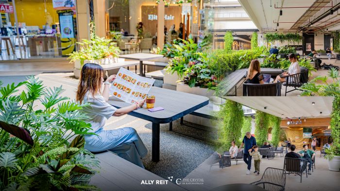 การนำเทรนด์ภายใต้คอนเซ็ปต์ “NEW DESIGN OF COMMUNITY, THE ART OF LIFE, GOOD LIFE AT THE CRYSTAL” ได้สร้างสรรค์ผลงานศิลปะสมัยใหม่ (MODERN ART) ที่ใช้การผสมผสานแม่สีหลักเพื่อสร้างความสดใสและมีชีวิตชีวาให้กับผู้มาเยือน พื้นที่แห่งความสุขที่รวมทุกอย่างไว้ในที่เดียว ไม่ว่าจะเป็นการกิน เที่ยว ช้อปปิ้ง คุณสามารถมีชีวิตดีๆ ที่เดอะคริสตัล ซึ่งรวบรวมร้านค้าชั้นนำมากมาย ทั้งร้านอาหารชื่อดัง ซูเปอร์มาร์เก็ตเกรดพรีเมียม ฟิตเนสเฟิร์สท์ โรงภาพยนตร์เอสเอฟ และร้านเฟอร์นิเจอร์ตกแต่งบ้าน นอกจากนี้ยังสามารถสะสมและใช้คะแนนสะสมจากบัตรเครดิตของธนาคารต่าง ๆ ผ่านแอป ALLY Sky Rewards เพื่อลูกค้าคนสำคัญ