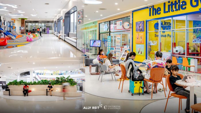 โซนแรก “THE ORIGIN OF CRYSTAL” ได้รับแรงบันดาลใจจากแนวคิดภูเขาไฟลาวาระเบิด สื่อถึงการจุดประกายความสนุกสนานและความตื่นเต้น โดยโซนนี้ได้นำเสนอ “CRYSTAL PLAYLAND” ดินแดนแห่งความสุขสำหรับเด็ก ๆ ที่ทาง ALLY REIT ภูมิใจนำเสนอเครื่องเล่นที่ยิ่งใหญ่ที่สุดและเป็นชิ้นแรกในภูมิภาคเอเชีย พร้อมด้วยอาณาจักรเครื่องเล่นหลากหลายชนิดให้เด็ก ๆ ได้ปลดปล่อยพลังอย่างเต็มที่ ทั้งหมดนี้ให้บริการฟรี นอกจากนี้ลวดลายกราฟิกที่ประดับประดาพื้นที่ยังสะท้อนความงามของลาวาที่พุ่งผ่านอย่างมีเอกลักษณ์ ต่อเนื่องด้วยโซน “THE STREET” ที่เชื่อมโยงศิลปะเข้ากับพื้นที่นั่งพักผ่อนในสวน (GARDEN SITTING) สร้างบรรยากาศอันน่าหลงใหลและน่าประทับใจอย่างเหลือเชื่อ