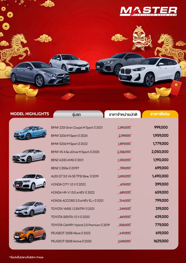 มาสเตอร์ เซอร์ทิฟายด์ ยูส คาร์ จัดใหญ่รับวาเลนไทน์และตรุษจีน กับแคมเปญ ‘The Perfect Match & Chinese New Year Special’ พร้อมข้อเสนอสุดพิเศษ ตลอดเดือนกุมภาพันธ์ 2569