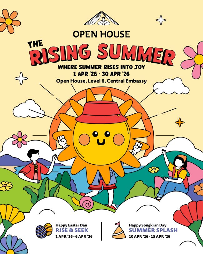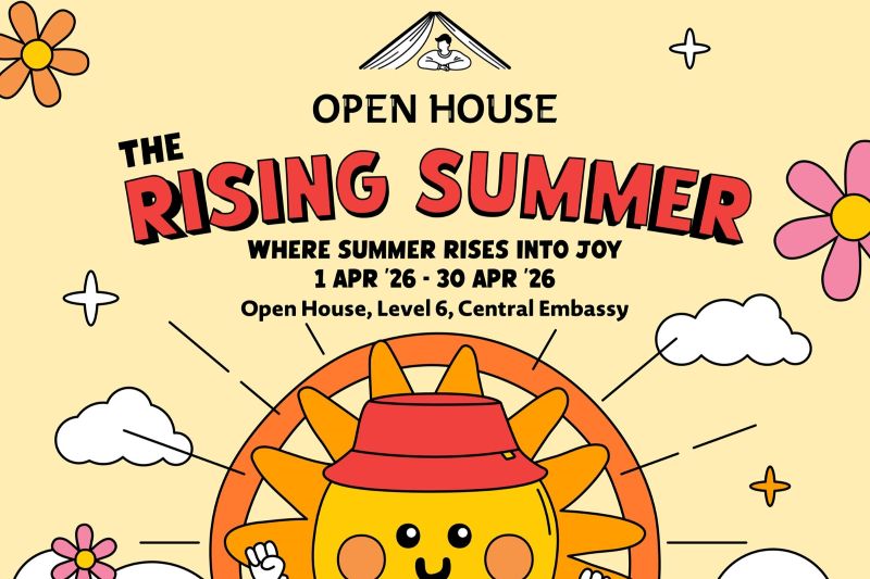 Open House (โอเพน เฮ้าส์) Co-Working Space ใจกลางกรุง ชั้น 6 ศูนย์การค้าเซ็นทรัล เอ็มบาสซี เตรียมเปิดพื้นที่ให้กลายเป็นดินแดนแห่งความสนุกและแรงบันดาลใจในงาน “THE RISING SUMMER – WHERE SUMMER RISES INTO JOY” ตลอดเดือนเมษายน 2026 นี้ โดยปีนี้พิเศษสุดกับการเปิดตัวคาแรคเตอร์ “น้องซันซัน” (Sun Sun) ตัวแทนความสดใสที่จะมาชวนทุกคนออกมารับพลังบวกและสร้างความทรงจำดีๆ ร่วมกัน