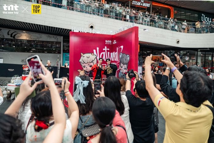 tnt (ทีเอ็นที) แบรนด์อาร์ตทอยหน้าใหม่จากประเทศจีน สร้างปรากฏการณ์สะเทือนวงการของเล่นไทยอย่างยิ่งใหญ่ในการเปิดตัวครั้งแรกสุดสัปดาห์ที่ผ่านมา โดยร่วมมือกับ TOPTOY (ท็อปทอย) ร้านมัลติแบรนด์ของเล่นชื่อดัง จัดกิจกรรมแฟลชอีเวนต์ “Rayan Born to Explore” ที่ไม่เพียงแต่ดึงดูดนักสะสมและผู้บริโภคหลายพันคนให้มาต่อคิวรอซื้อสินค้าอย่างล้นหลาม แต่ยังได้เชิญสองนักแสดงหนุ่มชื่อดังของไทยอย่าง ฟอส และ บุ๊ค มาร่วมงานอย่างใกล้ชิด นับเป็นก้าวแรกที่สำคัญในการขยายตลาดสู่ภูมิภาคเอเชียตะวันออกเฉียงใต้ และสร้างความสัมพันธ์ที่แน่นแฟ้นกับฐานแฟนคลับในท้องถิ่น