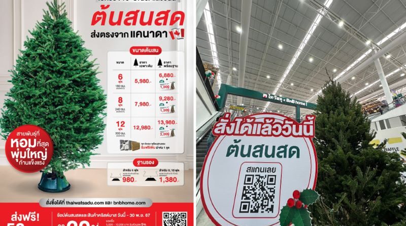 ไทวัสดุ และ บีเอ็นบี โฮม ผู้นำธุรกิจค้าปลีกวัสดุก่อสร้างและสินค้าตกแต่งบ้าน ภายใต้ บริษัท ซีอาร์ซี ไทวัสดุ จำกัด ในเครือเซ็นทรัล รีเทล ชวนสร้างบรรยากาศแห่งความสุข ต้อนรับเทศกาลคริสต์มาสและปีใหม่ ด้วยการเปิดให้จอง ต้นสนสด (Fresh-Cut Pine Tree) ส่งตรงจากแคนาดา เจ้าแรกและเจ้าเดียวในประเทศไทย!
