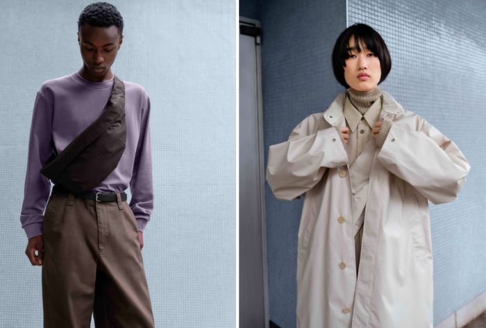 ทีมดีไซเนอร์เสื้อผ้าผู้ชายและผู้หญิงทำงานร่วมกันเพื่อสร้างสรรค์ไลน์ไอเทมผสานฟังก์ชันที่เรียบง่าย เช่นไอเทมเปี่ยมประสิทธิภาพ 2 ชิ้นพิเศษสำหรับฤดูกาลนี้ที่สามารถรับมือกับฝนปรอยๆ ได้อย่างดี ทั้งเสื้อโค้ททรงโอเวอร์ไซส์พร้อมกระดุมหน้า และเสื้อโค้ทตัวยาวมีฮู้ด