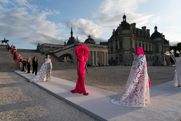 สำหรับโชว์ Valentino Haute Couture ประจำฤดูใบไม้ร่วง/ฤดูหนาวปี 2023-24 ผู้อำนวยการฝ่ายสร้างสรรค์ Pierpaolo Piccioli ได้ให้คำนิยามของ Château ว่าเป็นการประกอบขึ้นใหม่ของสัญญะเป็นบริบทที่สามารถปรับเปลี่ยนใหม่ได้ อีกทั้งเป็นสักขีพยานให้แก่ห้วงเวลาในอดีต ที่มีร่องรอยของการดำรงชีวิต – และเดิมเป็นสัญลักษณ์ของแนวคิดเรื่องสถานะสังคมและการปกครองโดยกลุ่มคนที่ร่ำรวย ในปัจจุบัน Château สามารถละทิ้งประวัติศาสตร์ของตนเองและได้รับการนิยามขึ้นมาใหม่ ไม่มีนามสากล และสามารถดำรงอยู่ในฐานะที่เป็นสถานที่สำหรับทุกคน เป็นพื้นที่ที่แสดงความเท่าเทียม และเฉลิมฉลองความสวยงาม เอกลักษณ์ และเสรีภาพ
