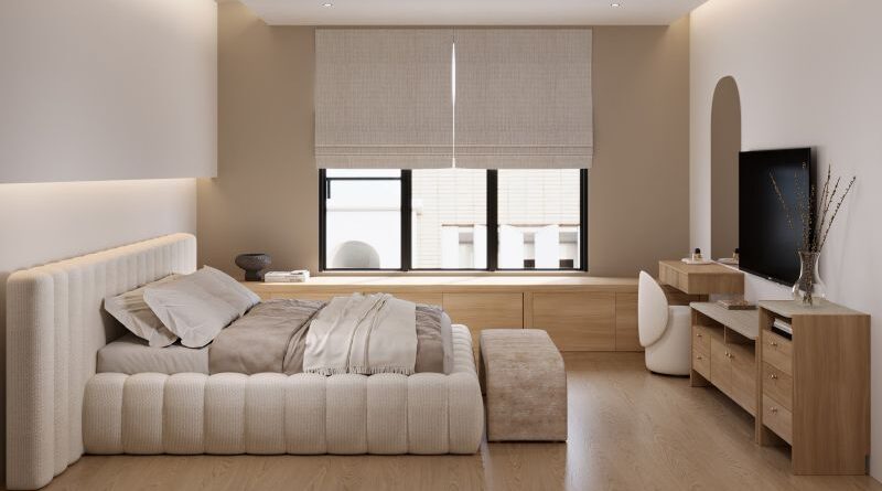 นอกจากนี้การแต่งบ้านในสไตล์ Modern Wabi-Sabi ยังสามารถผสมผสานกับเฟอร์นิเจอร์ในกลุ่มเดียวกันได้อย่างอิสระ ไม่ว่าจะเป็นโต๊ะข้าง โต๊ะกลาง Bench และเพิ่มความ Cozy น่าพักผ่อนและอบอุ่น ด้วยการตกแต่งห้องแต่งตัวด้วยเฟอร์นิเจอร์โค้งมนชิ้นอื่น อย่างตู้เสื้อผ้า Bianca ที่หน้าบานมีความโค้งมนและมีมือจับสีทองเหลืองที่เข้ากัน รวมถึงเตียงผ้านุ่มฟูสีครีมที่มีดีไซน์เป็นลอน อย่าง Grandniss และ Gamew เตียงดีไซน์ใหม่ของแบรนด์เอสบี เฟอร์นิเจอร์ ที่มาพร้อมฟังก์ชันเก็บของใต้ที่นอน เมื่อแสงเงาตกกระทบยิ่งทำให้เกิดความละมุน และช่วยลดความแข็งของพื้นที่ สะท้อนแนวคิดของ Modern Wabi-Sabi ที่ให้ความสำคัญกับทั้งความงามและการใช้งานจริงในทุกวัน