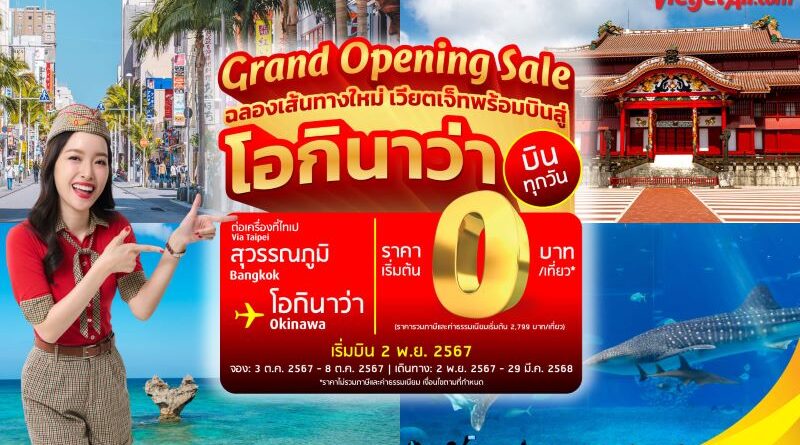 เวียตเจ็ทไทยแลนด์ เปิดตัวเส้นทางบินใหม่ กรุงเทพฯ – โอกินาว่า จัดโปรฯ เริ่มต้น 0 บาท