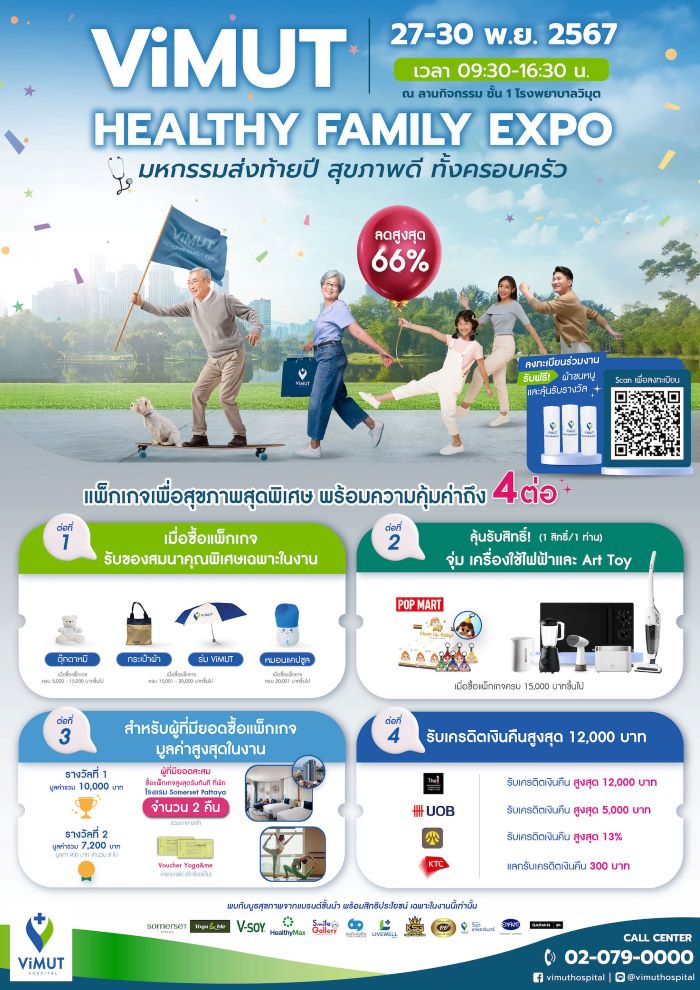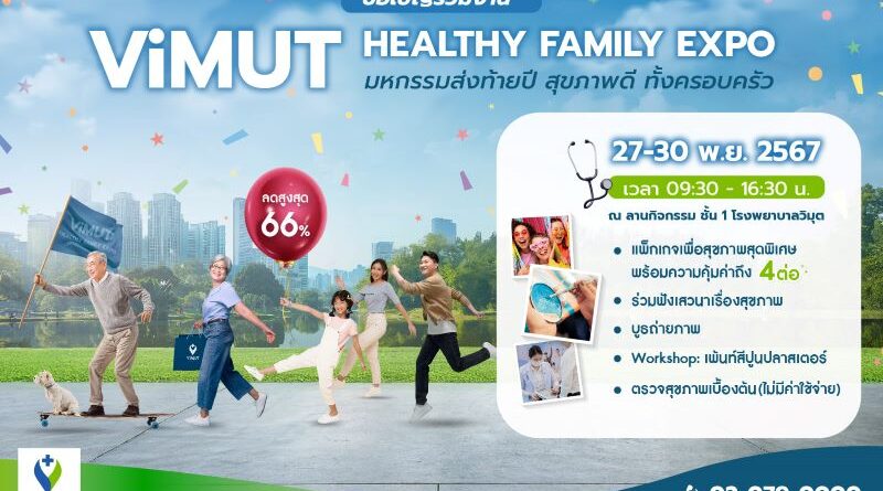 โรงพยาบาลวิมุต จัดใหญ่ส่งท้ายปี ลดสูงสุดถึง 66% ชวนทุกครอบครัวสร้างสุขภาพดีในงาน “ViMUT Healthy Family Expo” วันที่ 27-30 พ.ย. 67