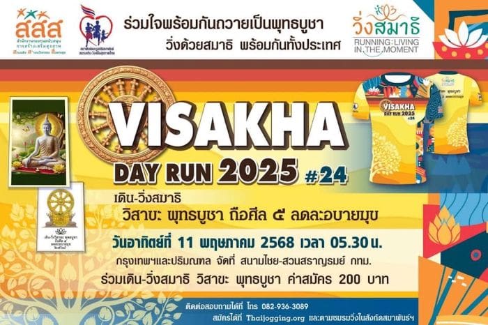 สสส. ผนึกพลังสมาพันธ์ชมรมเดินวิ่งฯ จัดกิจกรรมเดิน-วิ่ง สมาธิ วิสาขะ พุทธบูชา ถือศีล๕ ลด ละ อบายมุข ครั้งที่ 24 จัดใหญ่พร้อมกันกว่า 73 สนามทั่วไทย 11 พ.ค. นี้ ภายใต้แนวคิด Mindfulness Pathway เส้นทางวิ่งแห่ง “สติ” และ “ความรู้สึกตัว” ตั้งเป้าประชาชนเข้าร่วมกิจกรรมกว่า 37,948 คน