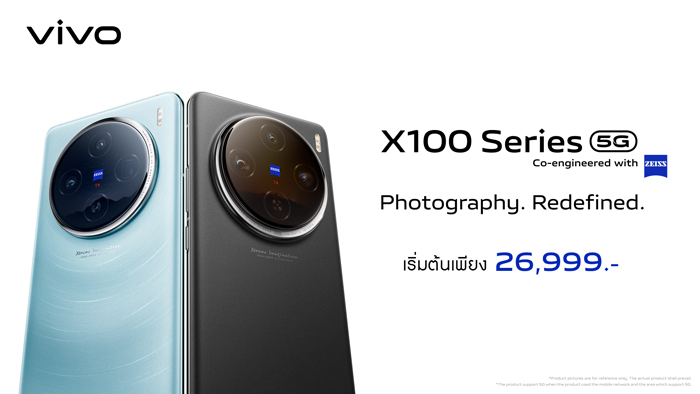 vivo แบรนด์สมาร์ตโฟนชั้นนำระดับโลก ประกาศเปิดตัวสมาร์ตโฟนเรือธงใหม่ล่าสุด vivo X100 5G และ vivo X100 Pro 5G สู่ตลาดประเทศไทยอย่างเป็นทางการ ตอกย้ำความมุ่งมั่นในการก้าวข้ามขีดจำกัดการถ่ายภาพสู่ระดับมืออาชีพภายใต้แนวคิด ‘พลิกโฉมวงการถ่ายภาพ’ หรือ ‘Photography. Redefined.’ พร้อมอัปเกรดระบบถ่ายภาพ vivo ZEISS Co-engineered ครั้งใหญ่ทั้งในระดับฮาร์ดแวร์และซอฟต์แวร์ นำเสนอกล้อง ZEISS APO Telephoto และกล้องหลัก ZEISS เซนเซอร์ขนาด 1 นิ้ว นอกจากนี้ vivo ยังจับมือ MediaTek เพื่อยกระดับความแรงให้กับ X100 Series 5G ด้วยขุมพลัง Dimensity 9300 และชิปประมวลผลภาพปรับแต่งพิเศษ vivo V3 อีกทั้งยังเสริมประสบการณ์การใช้งานอันราบรื่นให้ผู้ใช้งานด้วยความจุแบตเตอรี่แบบจัดเต็ม