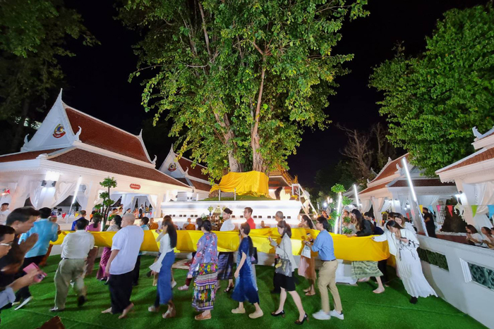 ก่อนปิดท้ายร่วมบุญห่มผ้าต้นพระศรีมหาโพธิ์อายุ 205 ปี