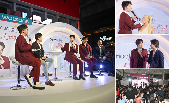ภายในงานมีการเปิดตัว Dermaction Plus by Watsons Cleansing X Nong Chat อย่างเป็นทางการเป็นครั้งแรก พร้อมพูดคุยเจาะลึกความพิเศษของผลิตภัณฑ์ ร่วมกับคุณนวลพรรณ ตัวแทนจากวัตสัน และน้องฉัตร เมคอัพสไตล์ลิสแนวหน้าของไทยที่เชี่ยวชาญด้านเครื่องสำอาง เข้าใจความต้องการของผิวและการแต่งหน้าเป็นอย่างดี พร้อมแลกเปลี่ยนเคล็ดลับดูแลผิวหน้า และการคงความอ่อนเยาว์ของผิว ร่วมกับแขกรับเชิญคนพิเศษ เฟิร์ส คณพันธ์ และ ข้าวตัง ธนวัฒน์ นอกจากนี้ ภายในงานยังมีกิจกรรมที่น่าสนใจมากมาย อาทิ มุมผลิตภัณฑ์ ที่พร้อมให้ทุกคนสัมผัสประสบการณ์ทำความสะอาดผิวที่แตกต่างไปจากเดิม รวมไปถึงยังมีมุมถ่ายรูปเก๋ๆ ให้ถ่ายรูปอวดเพื่อนๆ ในโซเชียลได้อีกด้วย และปิดท้ายกิจกรรมกับมินิคอนเสิร์ตของสองหนุ่ม เฟิร์ส-ข้าวตัง ที่เรียกเสียงกรี๊ดจากแฟนคลับทั้งหลายแบบดังสนั่นสยามสแควร์