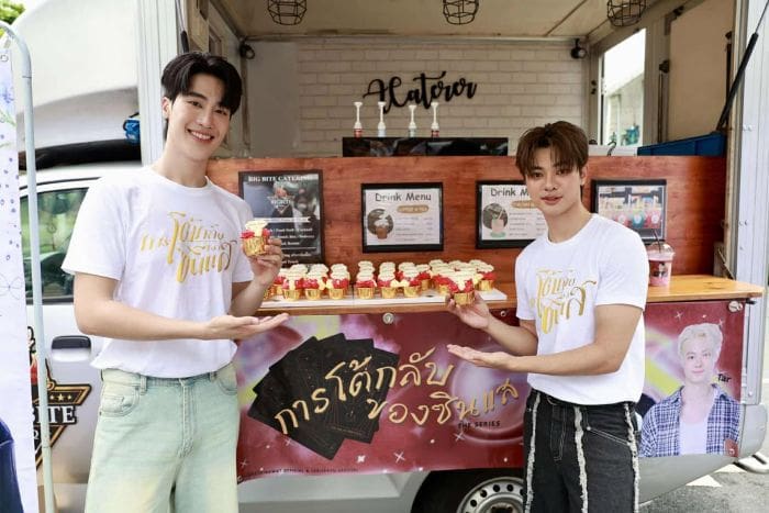 งานนี้อบอวลไปด้วยความเป็นสิริมงคล พร้อมพลังซัพพอร์ตจากด้อมที่ยกฟู้ดทรัคมาเสิร์ฟความฟินให้ทุกคน แถม “ไม้เอก–ต้า” ก็ไม่ปล่อยให้โมเมนต์ตก เสิร์ฟสายตาหวานใส่กันจนพี่ ๆ สื่อโดนตกกันถ้วนหน้า!