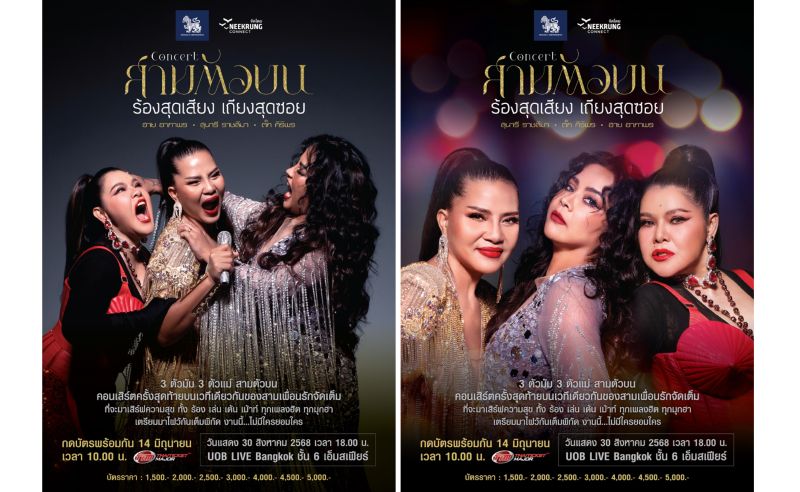 ปักหมุดจองบัตรรับประกันความสนุกกับวาไรตี้คอนเสิร์ต “สามตัวบน คอนเสิร์ต” ร้องสุดเสียง เถียงสุดซอย ได้ในวันเสาร์ที่ 30 สิงหาคม 2568 เวลา 18.00 น. ณ UOB LIVE Bangkok ชั้น 6 เอ็มสเฟียร์ จำหน่ายบัตรพร้อมกันในวันเสาร์ที่ 14 มิถุนายนนี้ ตั้งแต่เวลา 10.00 น. เป็นต้นไป ที่ไทยทิกเก็ตเมเจอร์ทุกสาขาหรือช่องทางออนไลน์ https://bit.ly/Women-on-top-concert