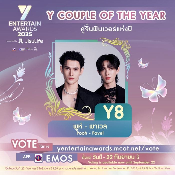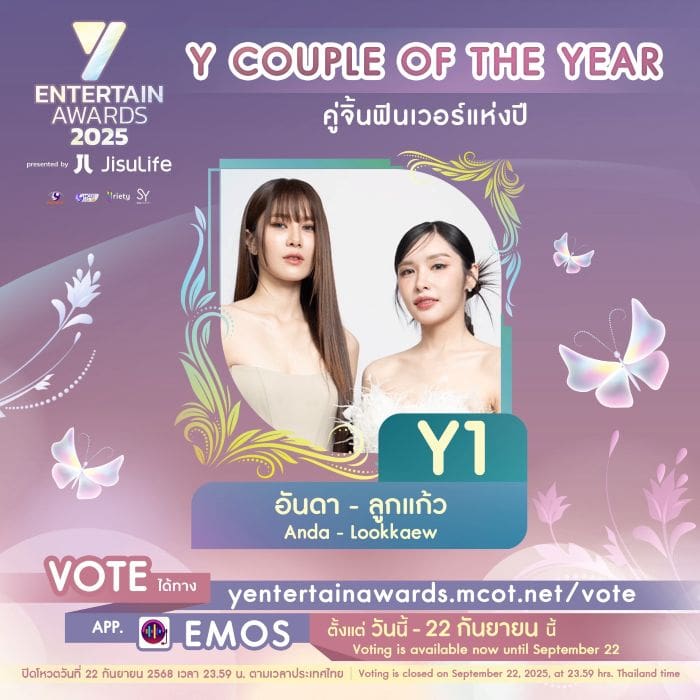 บริษัท อสมท จำกัด (มหาชน) ร่วมกับ บริษัท โซนิกซ์ ยูธ จำกัด โดย ก้อง-ปิยะ เศวตพิกุล จัดงานประกาศรางวัล “Y Entertain Awards 2025 presented by JisuLife” พร้อมเปิดโผ เปิดโหวตผู้เข้ารอบ เข้าชิงสาขารางวัล Y Couple of the Year (คู่จิ้นฟินเวอร์)
