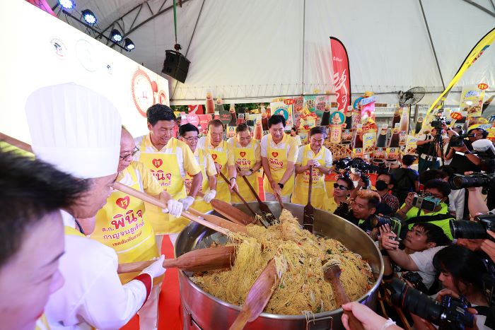 ภายหลังพิธีเปิดงานอย่างเป็นทางการ นายชัชชาติ สิทธิพันธุ์ พร้อมด้วยคณะผู้บริหารและผู้สนับสนุนได้ปรุงอาหารเจมงคลกระทะใหญ่ร่วมกับเชฟมืออาชีพจากโรงแรมแกรนด์ไชน่า เยาวราช ในเมนู “ผัดหมี่มหามงคล 10 มังกรสวรรค์” จากวัตถุดิบมงคล อาทิ หมี่เหลืองเจ แปะก๊วย เม็ดมะม่วงหิมพานต์ เห็ดหอม เห็ดชิเมจิขาวและดำ ข้าวโพดอ่อน ถั่วหวาน ถั่วงอก แครอท ลูกบัว งาขาวและงาดำ ไชโป้วหวาน เต้าหู้เหลืองทอด ขึ้นฉ่าย และพริกยักษ์ พร้อมแจกจ่ายให้ผู้เข้าร่วมงานชิมฟรี! จำนวน 1,110 จาน ท่ามกลางผู้สนใจเข้าร่วมงานอย่างคับคั่งตลอดเส้นทางถนนเยาวราช