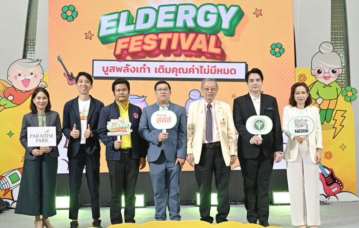 นางสาวจรูญรัตน์ สาลี กรรมการผู้จัดการ ศูนย์การค้าพาราไดซ์ พาร์ค พร้อมด้วย นายชาคิต พรหมยศ ประธานกรรมการผู้จัดการ บริษัท ยังแฮปปี้ จำกัด นายพีรพล สอนไข่ ผู้อำนวยการศูนย์พัฒนาการจัดสวัสดิการสังคมผู้สูงอายุปทุมธานี นายณัฐพล เทศขยัน ผู้ช่วยผู้อำนวยการสำนักสนับสนุนสุขภาวะประชากรกลุ่มเฉพาะ สำนักงานกองทุนสนับสนุนการสร้างเสริมสุขภาพ (สสส.) นายแพทย์วิชัย โชควิวัฒน ประธานสมาคมสภาผู้สูงอายุแห่งประเทศไทยฯ ดร. นายแพทย์นิธิรัตน์ บุญตานนท์ ผู้อำนวยการสถาบันพัฒนาสุขภาวะเขตเมือง และ นางสาวสลิลลา สีหพันธุ์ ผู้อำนวยการบริหารฝ่ายองค์กรสัมพันธ์ บริษัท เนสท์เล่ (ไทย) จำกัด เปิดโครงการ “Senior Health Promoter นักส่งเสริมสุขภาพดีรุ่นใหญ่” ในงาน ELDERGY FESTIVAL บูสพลังวัยเก๋า เติมคุณค่า ไม่มีหมด จัดขึ้นที่ Paradise Park ศรีนครินทร์ เมื่อเร็ว ๆ นี้